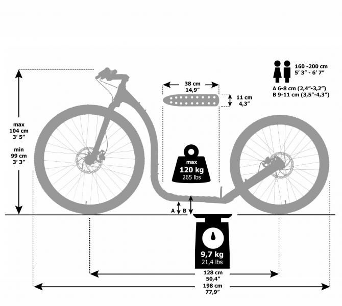 Astmelaua kõrgus: 11cm / 9cm olenevalt tagumise ratta asendist
