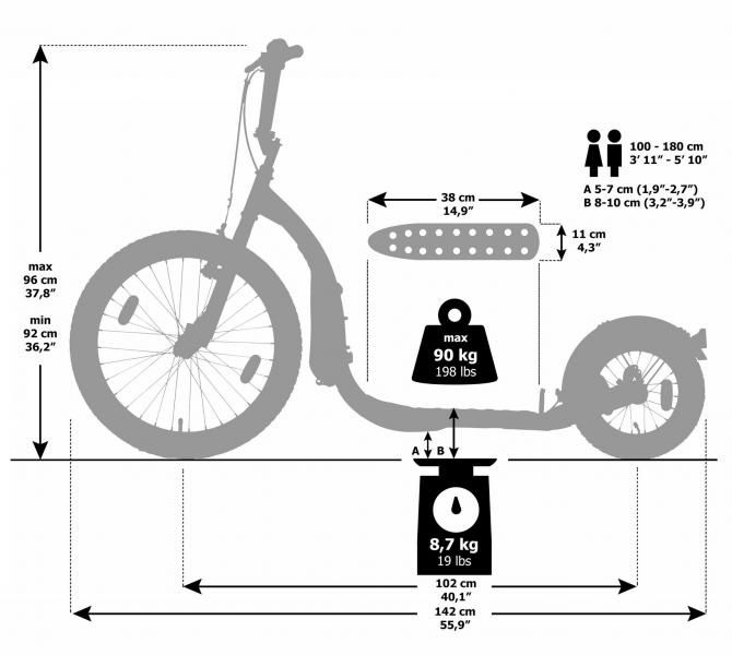 Astmelaua kõrgus: 10cm / 8cm olenevalt tagumise ratta asendist