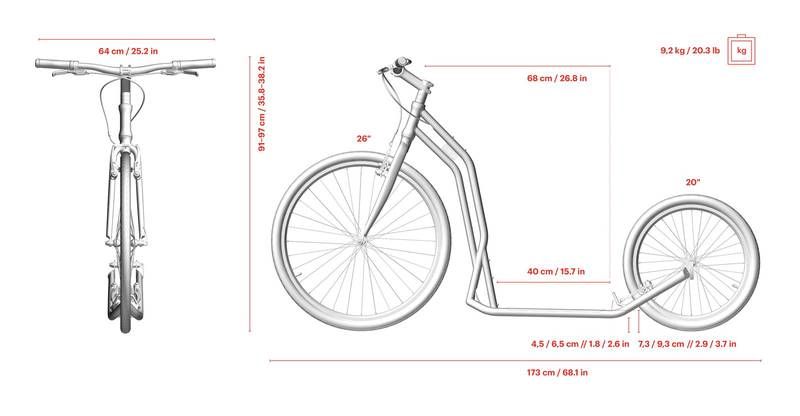 · Astmelaua kõrgus: 9,3 cm / 7,3 cm olenevalt tagumise ratta asendist