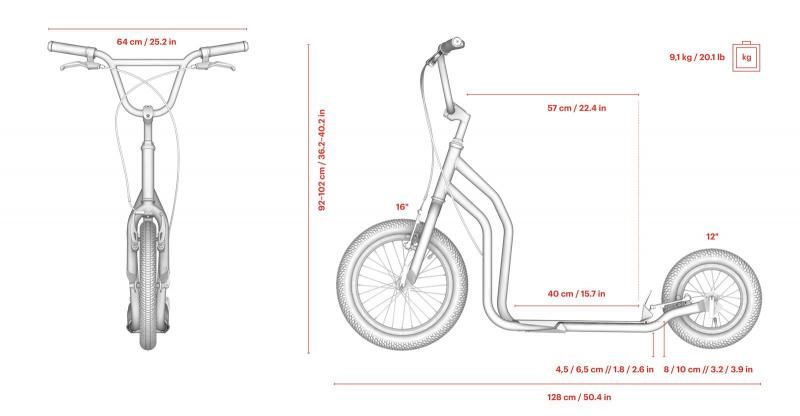 Pumbatavate õhkrehvidega tõukeratas noortele ja täiskasvanutele nii linnas kui ka linnast väljas- kruusateedel ja loodusradadel sõitmiseks.